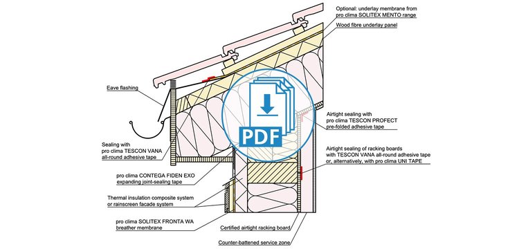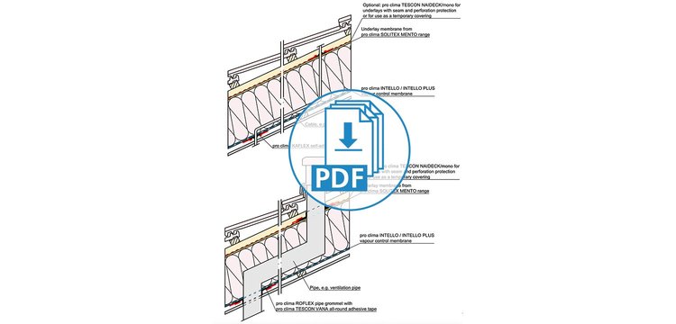 These drawings have been translated into English from German, but still feature our product recommendations for the German market. Not all of these products are available in all markets; please consult your local distributor for alternative products. Please take into account the Notes on the use of pro clima CAD drawings. By downloading any of the files here, you automatically consent to the contents of these Notes.